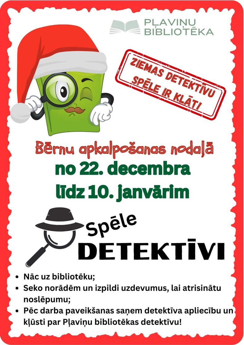 22.12. - 10.01.2026. Aktivitāte ar atjautības uzdevumiem un izlaušanās istabas elementiem "Detektīvu spēle"