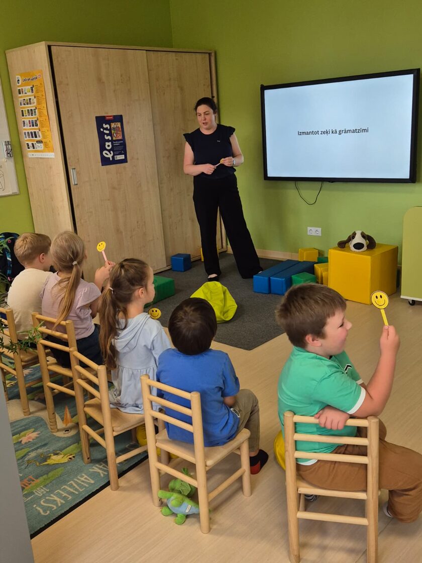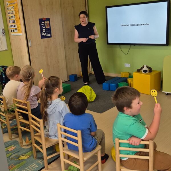 Pēc ekskursijas muzejpedagoģes Anitas Smelteres vadībā bērni izzināja izstādi “Grāmata Latvijā”. Ir apbrīnojami, cik daudzslāņaini var radīt atspoguļot tēmu tā, lai tā būtu interesanta un saprotama ne tikai pieaugušajam, bet arī aizrautu lasītāju ar salīdzinoši nelielu pieredzi. Tā ekskursijas dalībniekiem lāva izzināt grāmatu rašanos, attīstības vēsturi, izjust to ar teju visām maņām. Viņi patiesi izbaudīja iespēju izmēģināt piespiest, saost, saklausīt, sajust izstādes garšu un pievienoto vērtību.